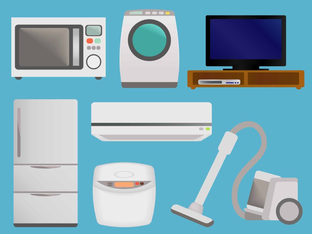 テレビ・ブルーレイ・洗濯機・掃除機・冷蔵庫・電子レンジ等。